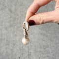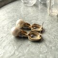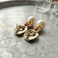 ゴールドトーンをベースに、バゲットカットのストーンとフェイクパールを組み合わせた、ドアノッカーピアス。