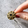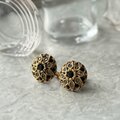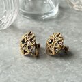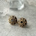 ゴールドトーンをベースにブラックとクリアなラインストーンが散りばめられたイヤリング。
