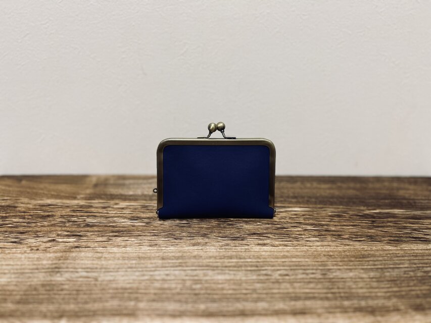 国産レザーコンパクトがま口財布◆ネイビー カード入れ 名刺入れ 革財布 小銭入れ 2026