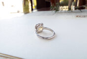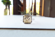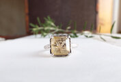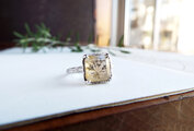 樹木のように見えるのが特徴の「デンドリティッククォーツ」を、「身に着ける植物標本」のイメージでリングにしました。
