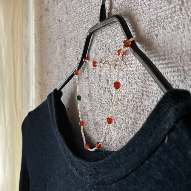 貝ビーズが海のものだからかカーネリアンが綺麗ないくらのよう。