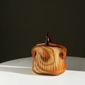 1950〜1960年代頃にイタリア・ムラーノ島で作られた、ころんとした丸みのあるフォルムが特徴のヴィンテージアートガラスのフラワーベースです。透き通った鼈甲色のガラスに、乳白色のガラスがゆるやかに混ざり合うマーブル模様が美しく温かみのある表情を見せます。ずっしりと重みがあり、分厚いガラスで作られているのでオブジェとしても存在感がありますが、もちろん花器としても楽しめます。
