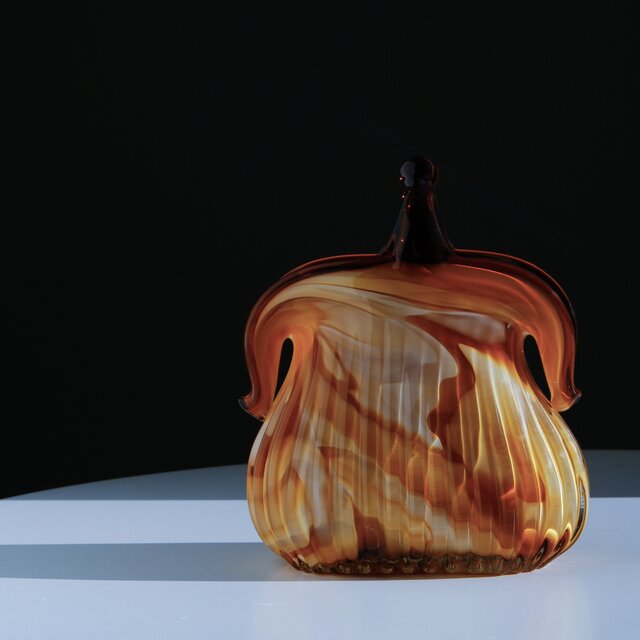 【Murano】イタリア製 / ヴィンテージ / がま口型ガラス花瓶 / アンバー