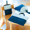 合わせた濃紺の生地は、格子状に織り込んだ、