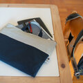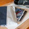 合わせた濃紺の生地は、格子状に織り込んだ、