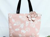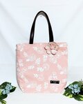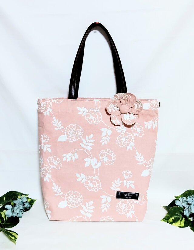 北欧風柄ナチュラルで優しい色合いのピンク地にヒナゲシの花柄の布トートバックです。