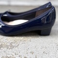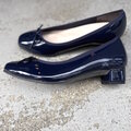 23.0cmのみ エナメル 3cmヒール スクエアシルエット 紺色パンプス