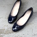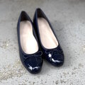深みのある紺色が大人びた印象と仕事にもお出かけにも使える万能シューズです。