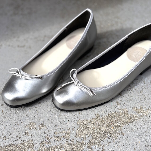 23.0cmのみ/マットシルバー/万能フラットパンプス/ワンマイルコーデにも