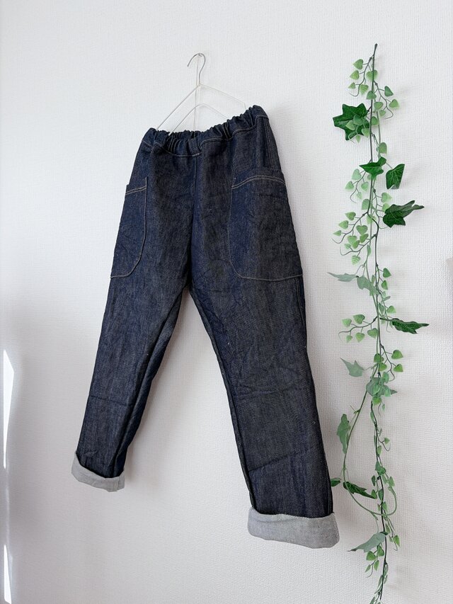 岡山産デニムポッケ付きリラックスパンツ