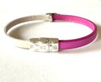 ヨーロッパ製の高級本革 5mm幅 ロイヤルピンク と パールホワイトで 2カラーのブレスレットを作りました。