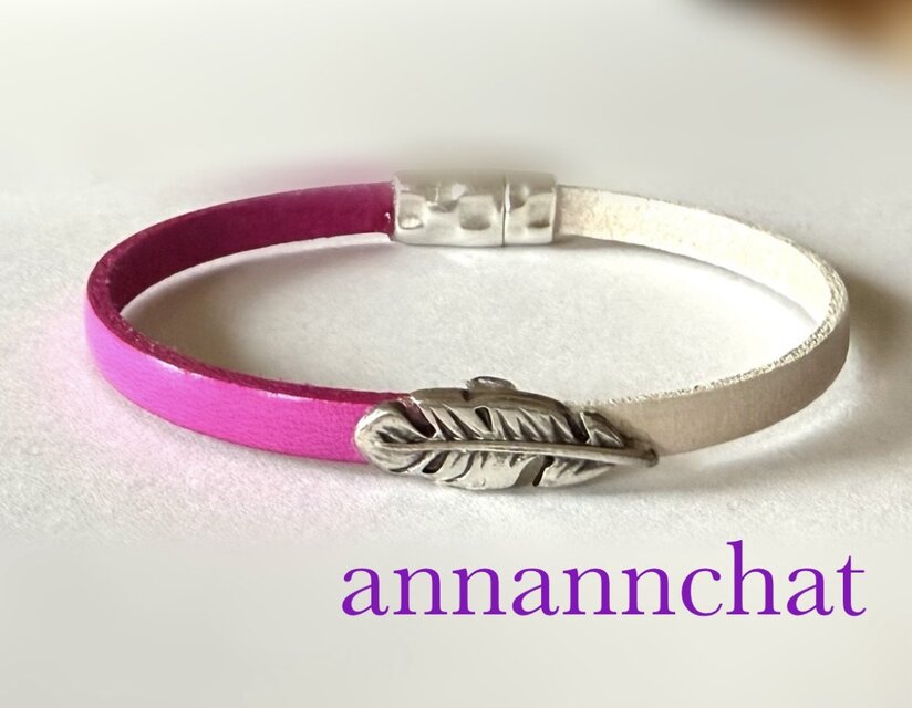 【ヨーロッパ製 本革 2カラー ロイヤルピンク・パールホワイト 羽根 ブレスレット】マグネット留め具