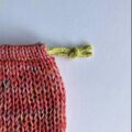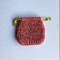 表側と裏で異なる特徴の毛糸を使用し、りんごみたいな巾着が完成しました。
