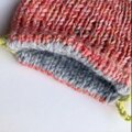表と裏で毛糸の太さが異なるため、表に使用した細い毛糸の編み目の間から裏側のグレーの毛糸がうっすらと見え綺麗です。