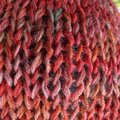 表側は手染めのソックヤーンを大きめの棒針を使い編み、
