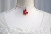 光沢のある赤色がデコルテを明るく照らすチョーカーです。