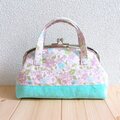 倉敷帆布 トートバッグ型 大きめがま口ポーチ 17.5cm口金 通帳ケース お薬手帳ケース ミントグリーン 602