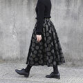 ★新作 コーデュロイ 手書きランダムドット ギャザースカート( ブラック )ロング マキシ ポケット ブラック