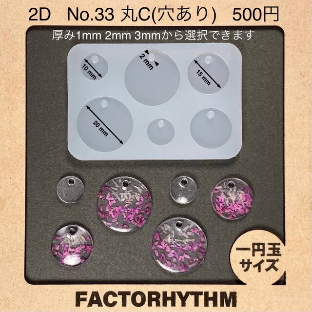 カン穴直径2mmを配置した丸(円)型のモールドです