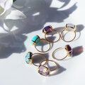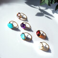 大粒クリソコラ×水晶の14mmのカボションカット爪留めリング ~礁湖(しょうこ)