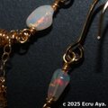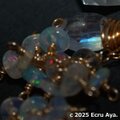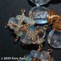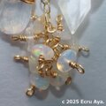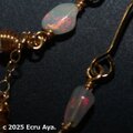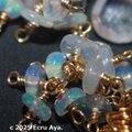 チェーンには宝石質レインボームーンストーンと宝石質ハイアライトオパールのペアシェイプを2個、その下にエチオピア産プレシャスオパールのロンデルをたわわに下げました