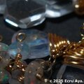 素材:宝石質クリスタルAAA ロンバスカット、宝石質レインボームーンストーンAAA ペアシェイプブリオレットカット、宝石質ハイアライトオパールAAA ペアシェイプブリオレットカット、宝石質エチオピア産プレシャスオパールAAA タンブル ロンデル、その他すべて14kgf