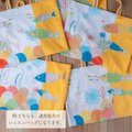 *魚のパッチワーク部分は布同士を重ねて縫う構造のため、引っかかりや摩擦が強いと端がほつれる場合があります。お取り扱いにはご注意ください。