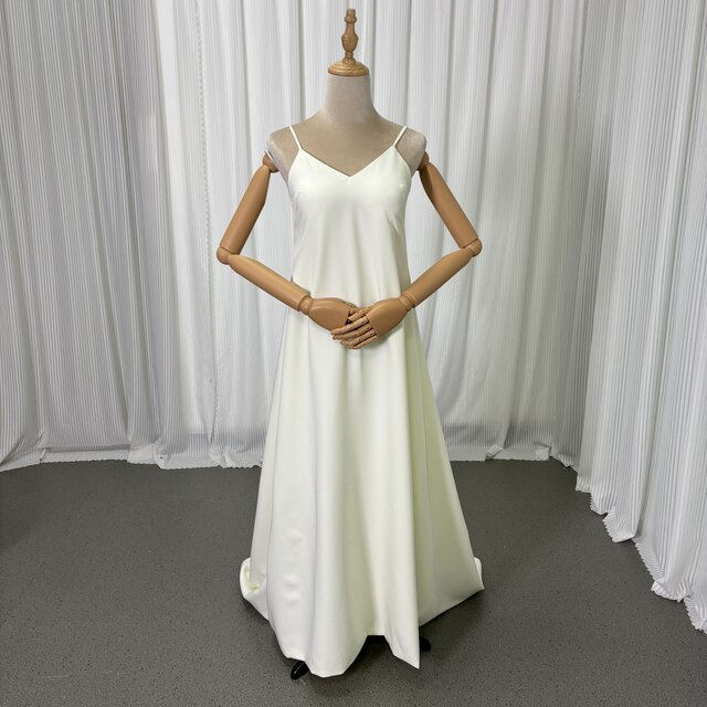 キャミソール パーティードレス アイボリー ミニトレーン Vネック ファスナー スレンダーライン 二次会
