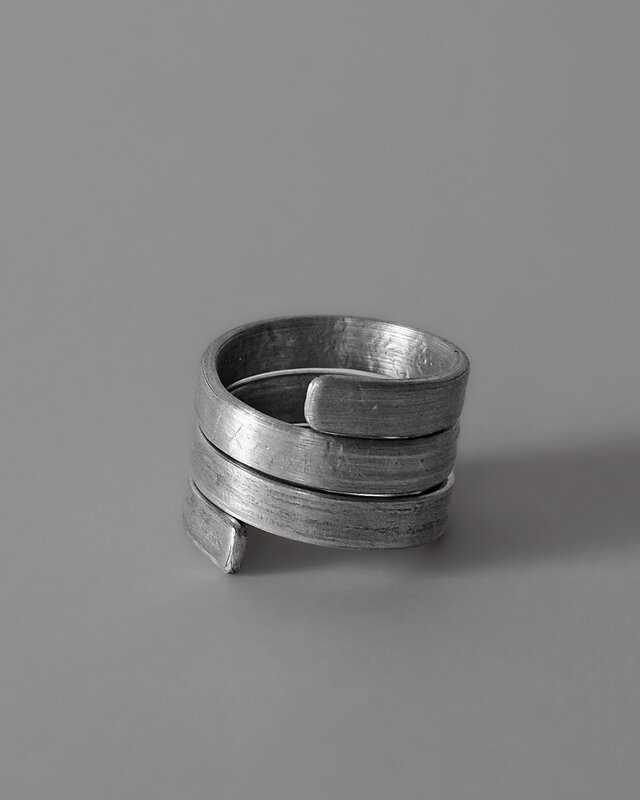 白い像を静かにたたえる、フリーサイズの錫リングです。