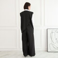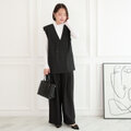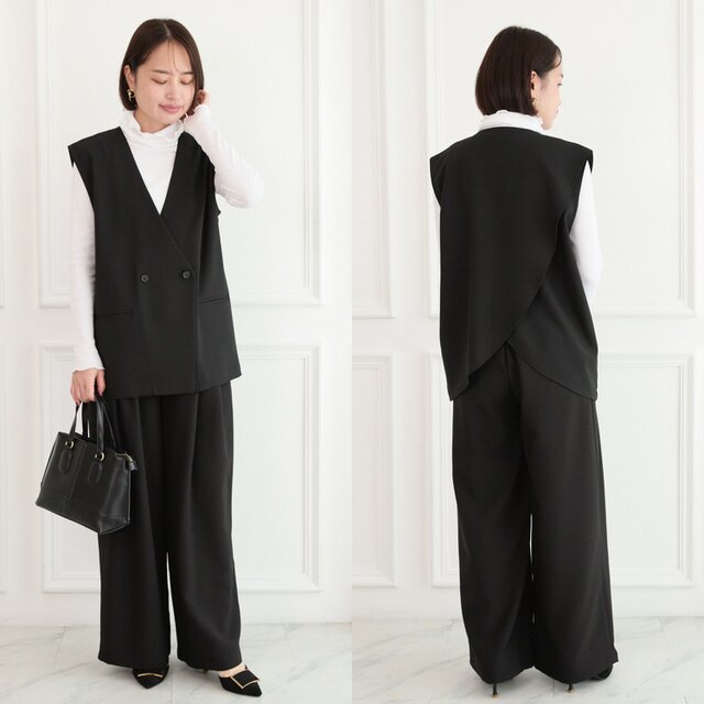 【着回し効くセットアップ】サラサラ素材✨シワになりにくい バックスリットジレとプリーツワイドパンツ セット ブラック