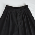 プリーツタック ワイドパンツ 後ろウエストゴム 【4サイズ】 ブラック 0635BK