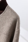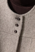 ・どんな襟元のインナーとも調和する、シンプルで洗練されたノーカラーデザイン。ハイネックで温かくまとめるもよし、開いたシャツと合わせて軽やかに着こなすもよし。スタイリングの可能性を広げます。