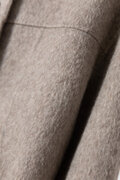 最大の特長は、熟練職人がすべてを手作業で仕立てる「総手縫い」にあります。一日の生産数がわずか2枚という、まさに一点ものに近い稀少性。機械では再現できない繊細な縫製技法により、縫い目は驚くほど美しく整い、素材が自然に形成する柔らかなドレープと、身体に沿う優雅なラインを実現しました。