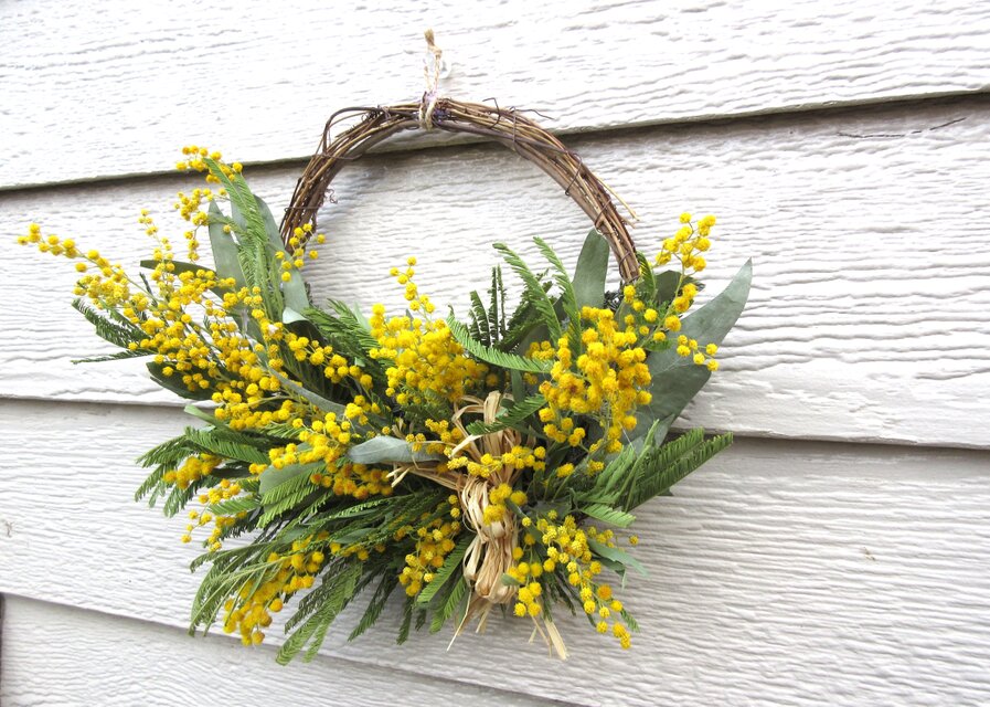 ミモザの輝くばかりのフワフワの花粒はドライになるとまーるい蕾のような