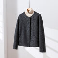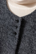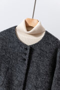 ・どんな襟元のインナーとも調和する、シンプルで洗練されたノーカラーデザイン。ハイネックで温かくまとめるもよし、開いたシャツと合わせて軽やかに着こなすもよし。スタイリングの可能性を広げます。