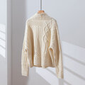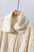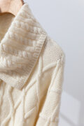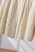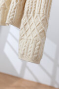 立体感あるアラン編み: 全身を施した大胆なアラン編みの凹凸が、上品でリッチな質感を作り出しています。 光と影のコントラストが美しく、シンプルなコーディネートでも映えます。