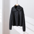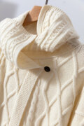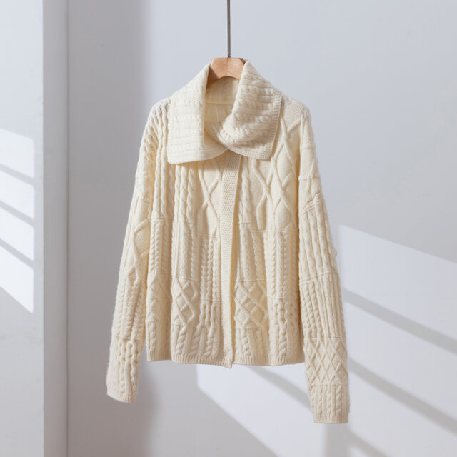 レトロなラップオーバーカーディガン ケーブル編みカーディガン ウール100% 二色 260110
