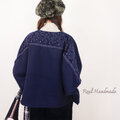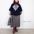 [予約販売] ネイビーウールとトーションレースの羽織りケープ** ポンチョ 羽織り 紺 フラワー 旅行 美術館