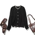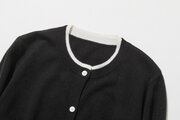 季節を問わず活躍する一枚 配色ウールとカシミヤカーディガン ブラック 260113-2