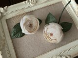 ・染め花は花びらのカット、染め、こてあて、成形、すべて手作業によるものです。多少の色むらやレース・リボンのほつれなどご理解の上、お買い上げくださいませ。また、雨や雪などによる色落ちには十分ご注意ください。