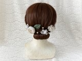 ・染め花は花びらのカット、染め、こてあて、成形、すべて手作業によるものです。多少の色むらやレース・リボンのほつれなどご理解の上、お買い上げくださいませ。また、雨や雪などによる色落ちには十分ご注意ください。