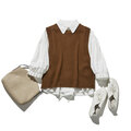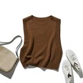 ざっくり編みの上品シルエット メリノウール ベスト 焦げ茶色 260117-3