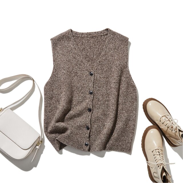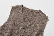 軽やかで上品なこのベストは、コーディネートの仕上げに最適な一枚。温かみのある素材感で、秋冬から春先まで長く愛用できます。
