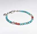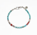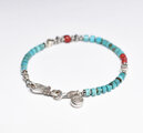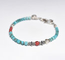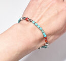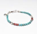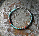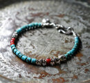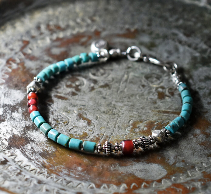 筒型ターコイズと金赤ホワイトハーツ、カレンシルバーを繋いだブレスです。