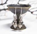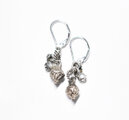 インドピューター繊細細工パーツと花付き小さなインド鈴を繋いだピアスです。