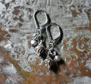 インドピューター繊細細工パーツと花付き小さなインド鈴のピアス