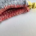 裏側は元気が出るようなお気に入りの手染めの赤のソックヤーンを使用して棒針編みで編みました。