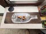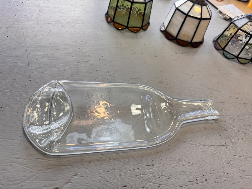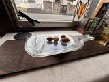 クリアガラス製のボトル型プレート、サービングディッシュや装飾トレイに最適です。