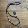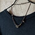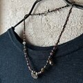 ジャワの艶消しの黒いシードビーズと大きいサイズのシードビーズ2色でチェーンを組んで、首元周りはちぃさなカレンシルバービーズを合わせました。