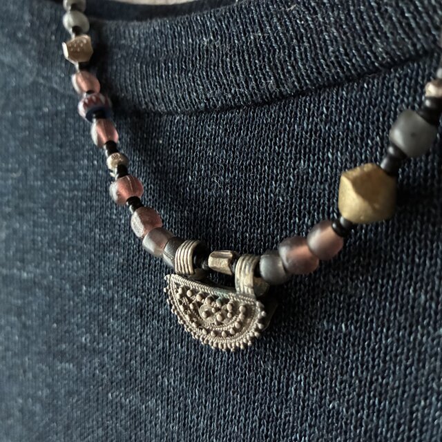 *happy price*とらいばるなネックレス。@エチオピアのチャーム+ジャワのシードビーズ3種+カレンシルバー+民族メタル